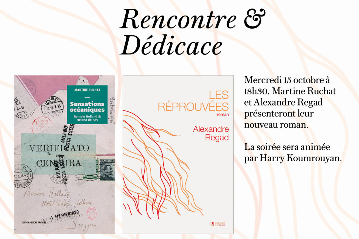 Mercredi 15 octobre à 18h30, nous accueillerons Martine Ruchat et Alexandre Regad qui présenteront leur nouveau roman.